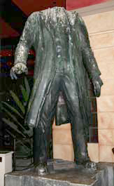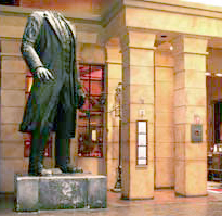 A 14 ft., 4,500 lb. statue of Vladimir Ilich Lenin was erected in 1999 outside of the Red Square restaurant and bar along the Mandalay Bay Row at the Tropicana Casino and Resort in Las Vegas. A few months later on March 26, 1999, after complaints from retired servicemen, Circus Circus Enterprises Inc., the parent company of Mandalay Bay, beheaded the statue and dripped white paint on it to resemble bird droppings. The head is kept in a frozen block of ice along with the restaurant’s vodka selection. |