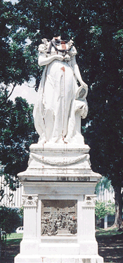 A statue of the Joséphine de Beauharnais, the wife of Napoléon Bonaparte and the first French Empress, was erected in 1859 at La Savane park in Fort de France, Martinique, when Josephine’s grandson, Napoleon III, was ruler of France. Originally named Marie Josèphe Rose de Tascher de la Pagerie, she was born in Trois-Ilets, Martinique in 1763. In 1779, she moved to Europe and married Alexandre François Marie de Beauharnais, who was later beheaded in 1794 during the Reign of Terror. Joséphine de Beauharnais married Napoléon Bonaparte on March 9, 1796 and was crowned Empress of France in 1804 and divorced in 1809. The statue of Empress Josephine was beheaded in 1991, and a few years later spattered with red paint. Josephine is disliked because it is believed that she convinced Napoleon to reinstate slavery in all the French colonies* which he did in 1802. On April 27, 1848 the French government again abolished slavery in all of its colonies. |