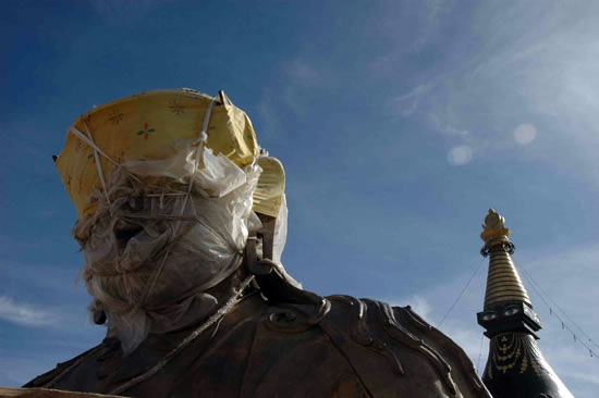 Statue of Guru Rinpoche (Padmasambhava) under construction prior to demolition in mid-May, Samye monastery, Tibet (Image taken February 2007).* |